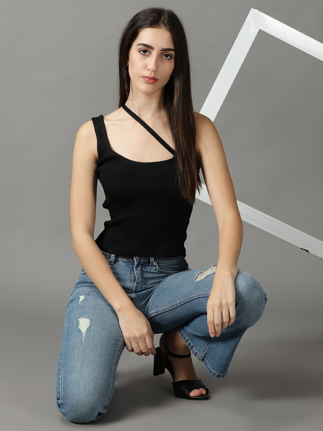 Women's Beige Self Design Acrylic Styled Back Crop Top