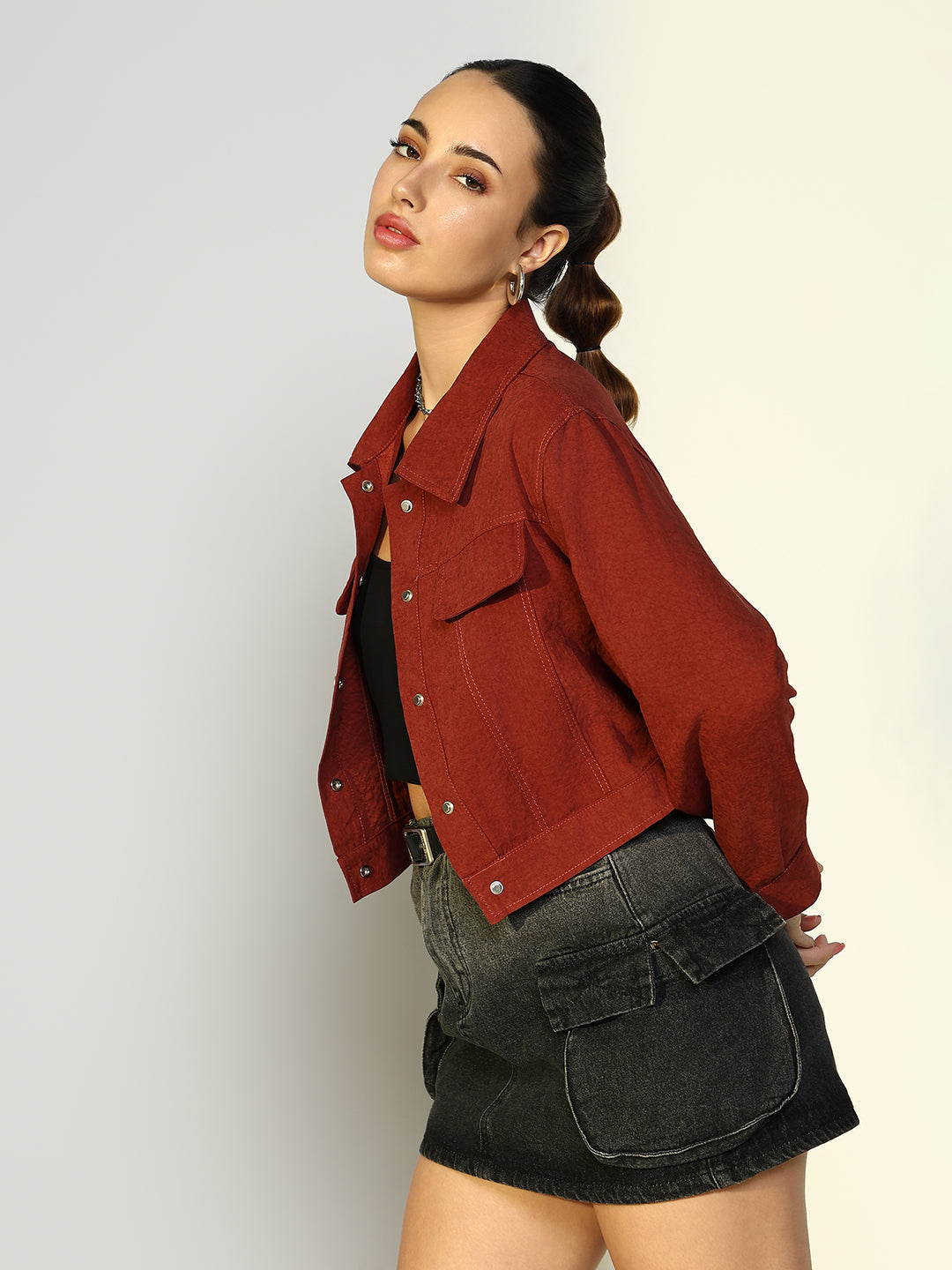Women's Textured Red Jacket with Snap Buttons