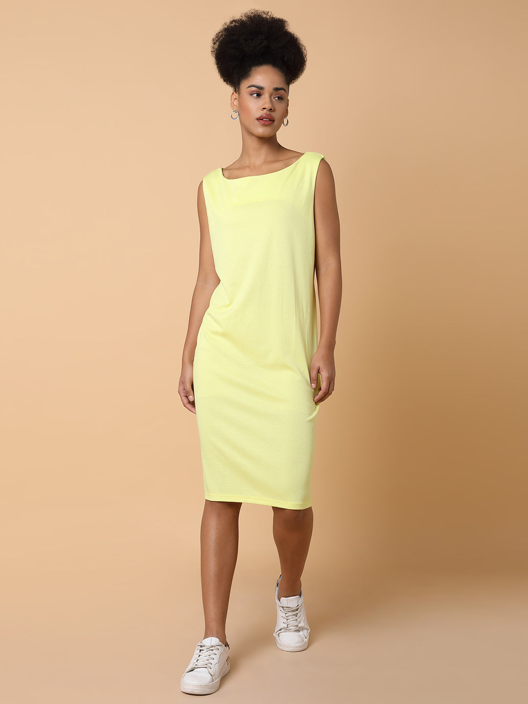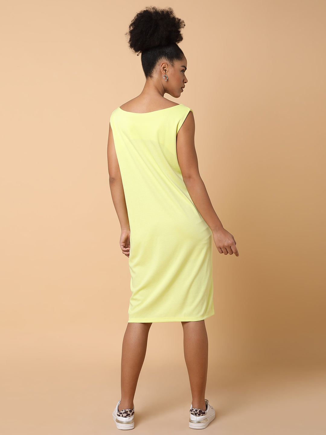 Elevate your wardrobe with the Women Solid T-shirt Yellow Dress. a perfect blend of comfort and style. This versatile piece is ideal for casual outings or dressed up for a chic evening look.