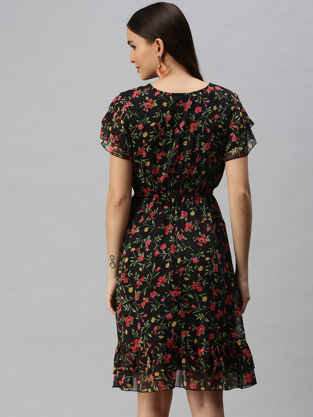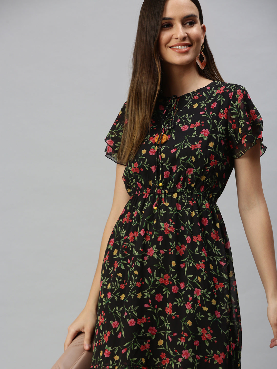 Elevate your wardrobe with the Women Printed A-Line Black Dress. a perfect blend of elegance and versatility. This stunning dress is designed to flatter every body type while offering a stylish silhouette that can be dressed up or down for any occasion.