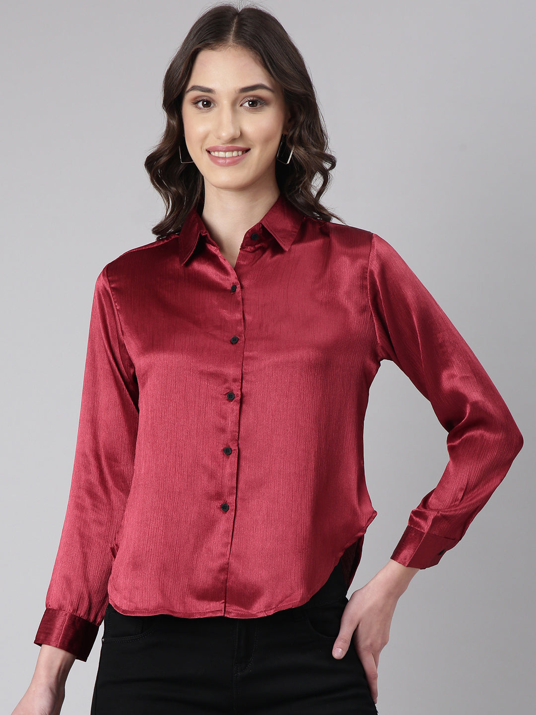Women's Maroon Slim Fit Crepe Casual Shirt