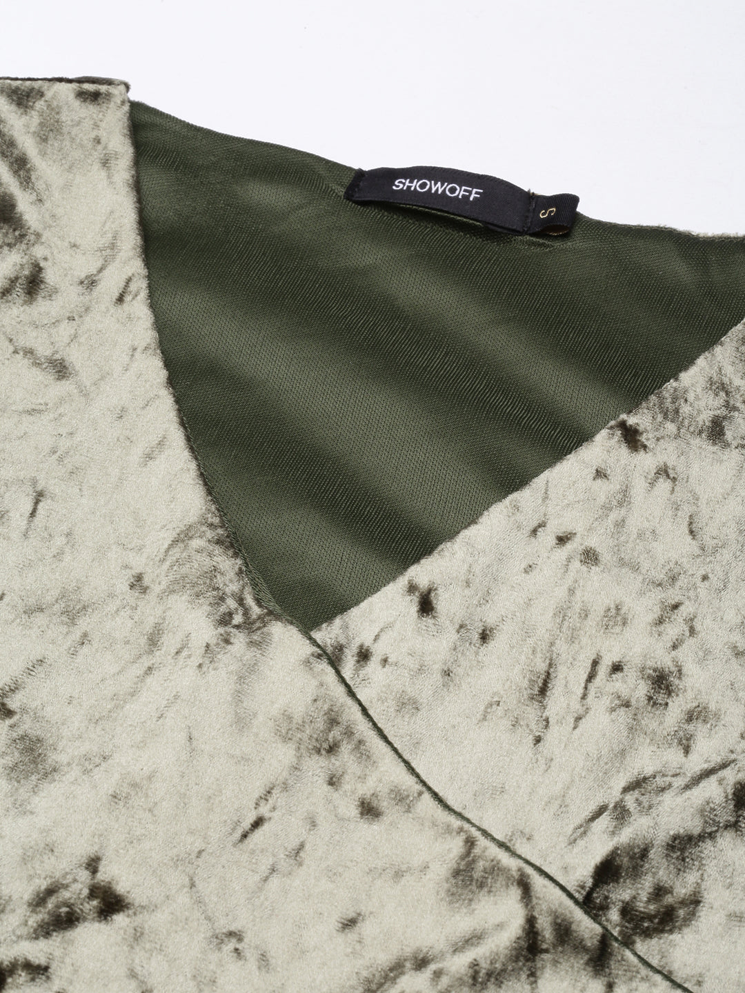 Women's Olive V Neck Three-Quarter Sleeves Velvet Warp Dress