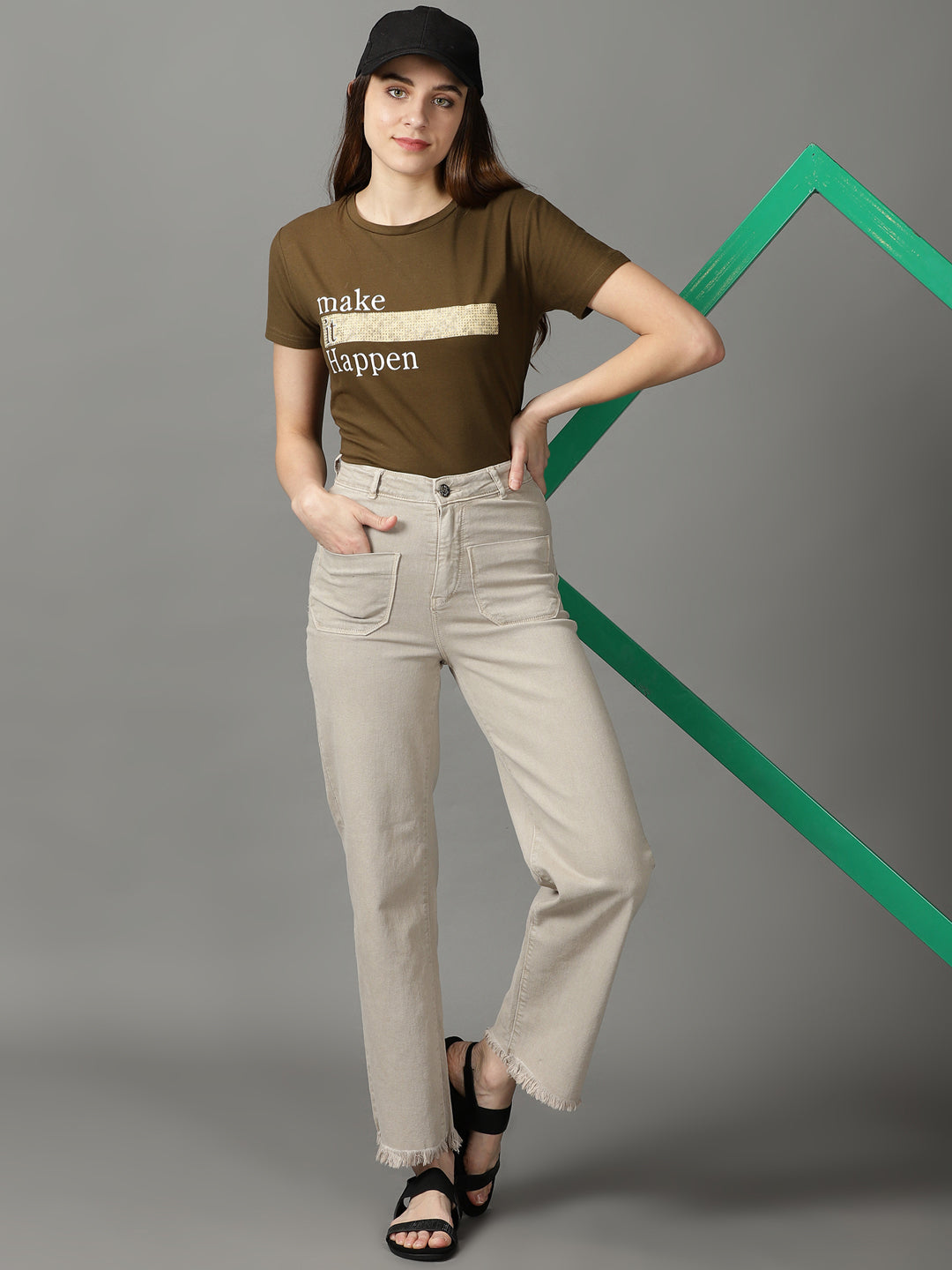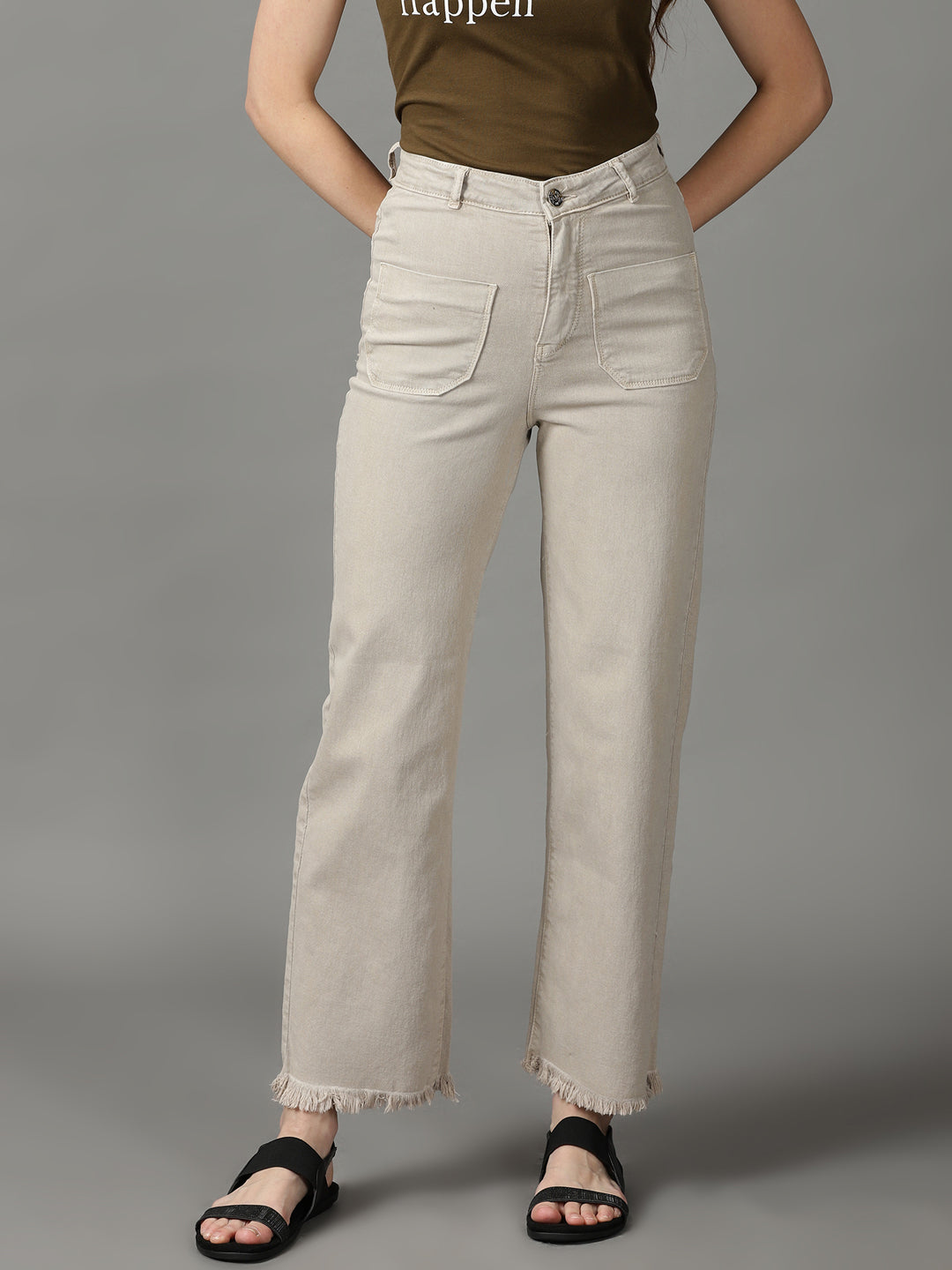 Women's Beige Wide Leg High-Rise Stretchable Cotton Jeans