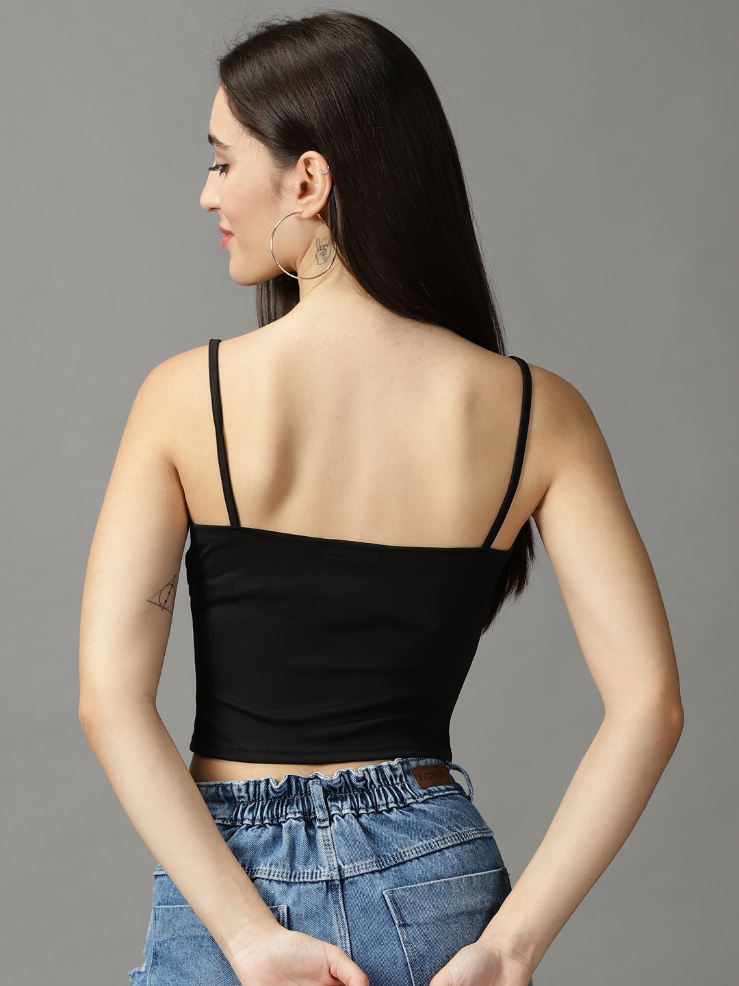 Women's Black Button Studded Fitted Crop Top