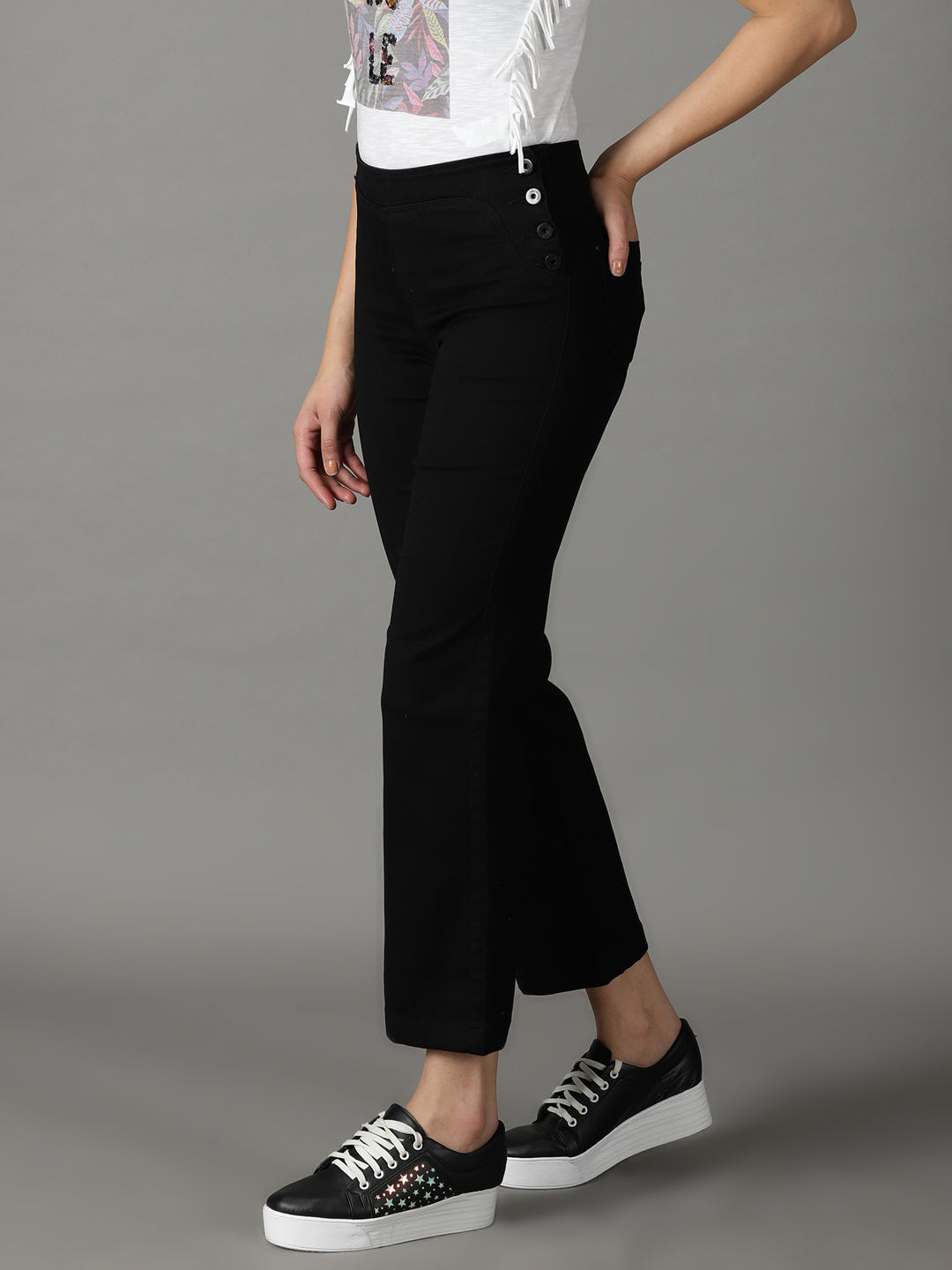 Women's Black Straight Fit Stretchable Cotton Jeans