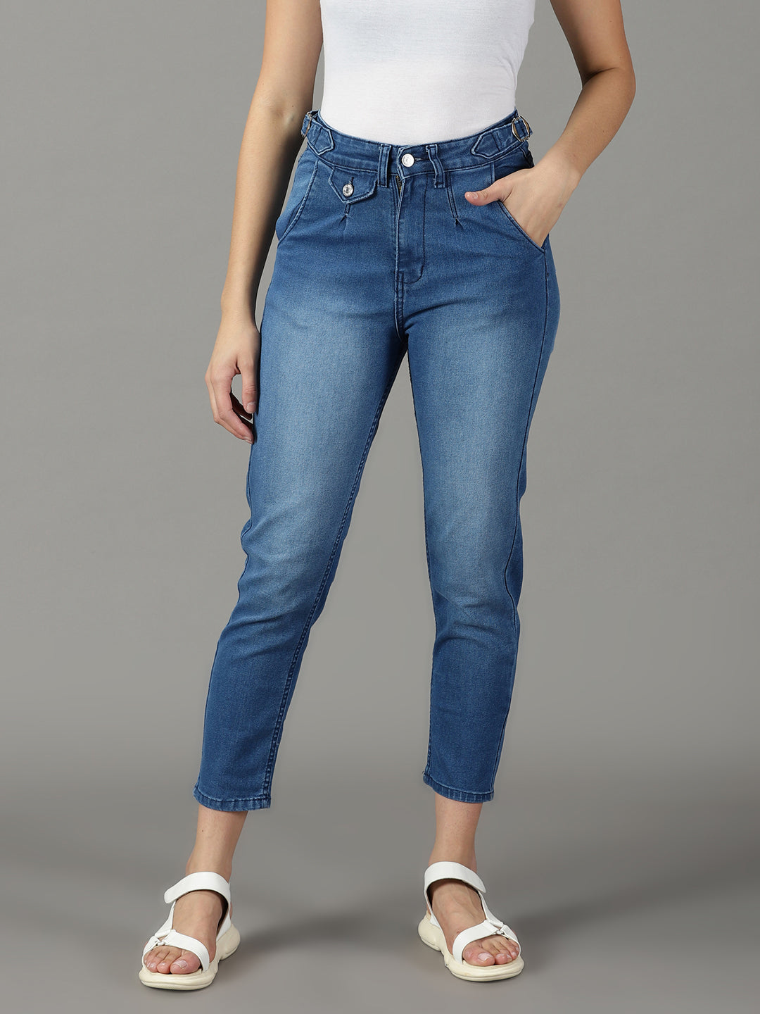 Discover the perfect blend of comfort and style with our Women's Blue Solid Fit Denim Jeans. Designed for versatility and durability. these jeans are a wardrobe essential that effortlessly elevate any outfit.