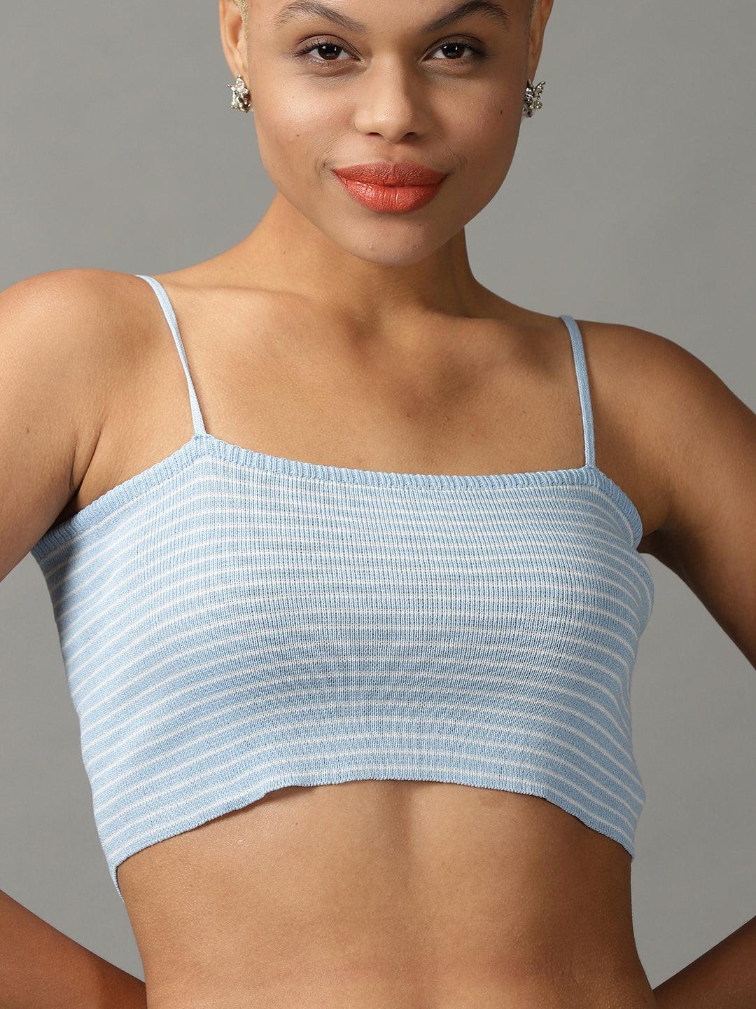 Women's Blue Striped Crop Top