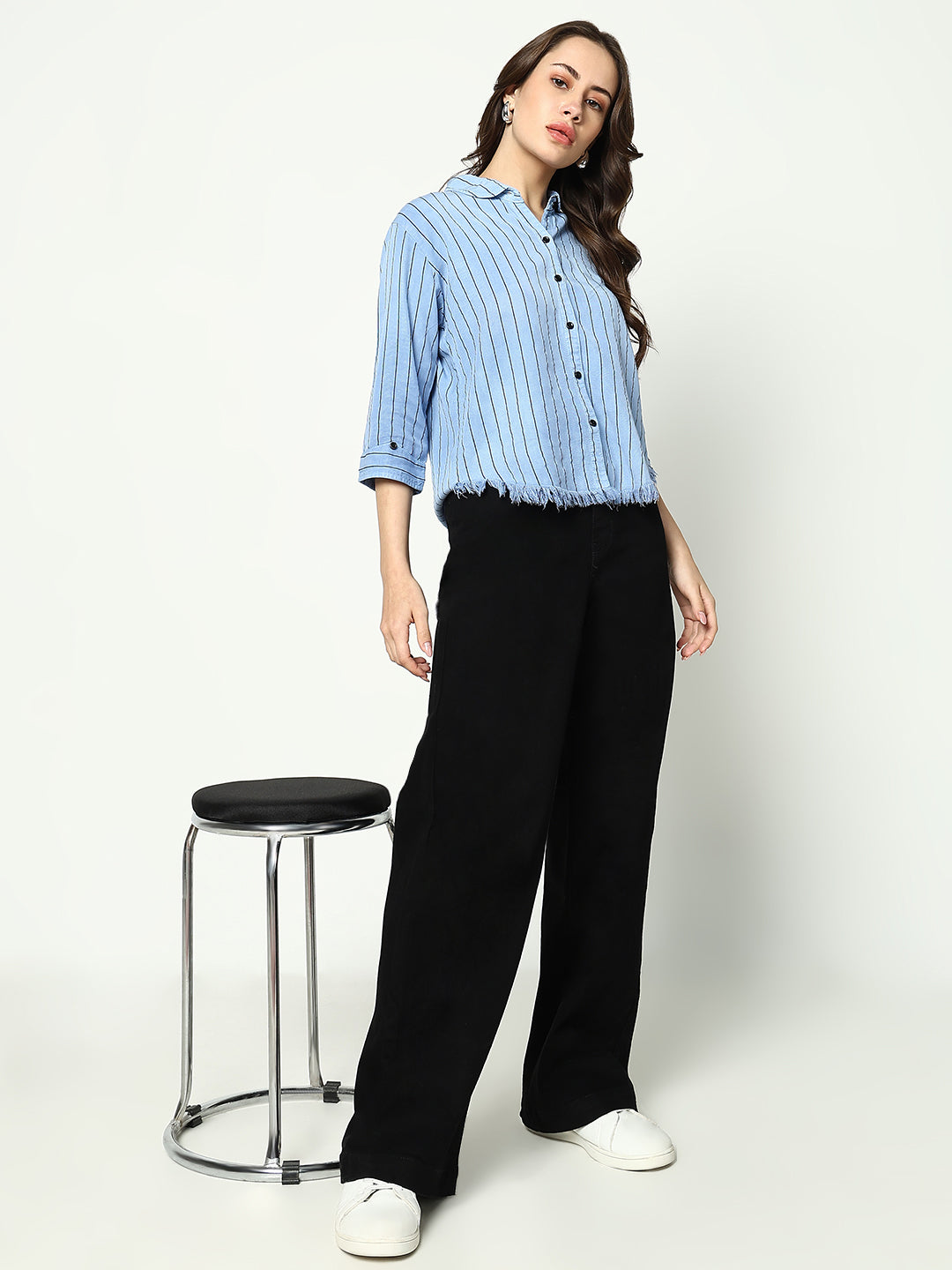 Discover the perfect blend of style and comfort with our Women's Blue Striped Shirt. Ideal for both casual outings and professional settings. this shirt is designed to enhance your wardrobe effortlessly.