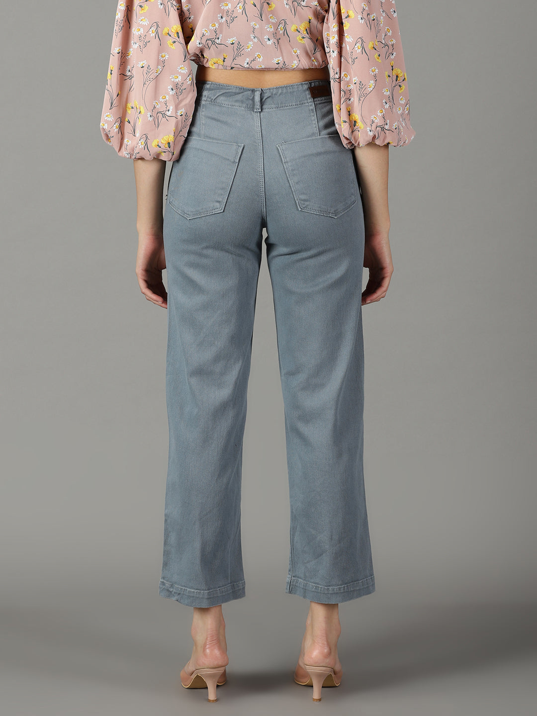 Women's Grey Wide Leg High-Rise Cotton Jeans