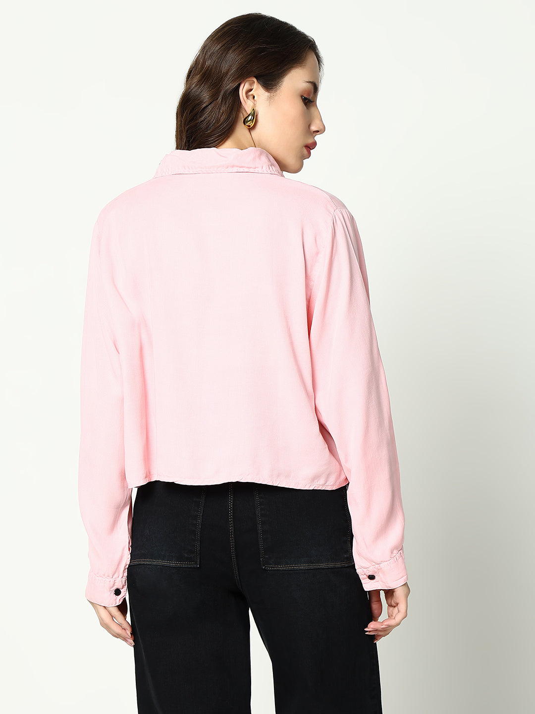 Elevate your wardrobe with our Women's Pink Solid Crop Shirt. designed to offer a perfect blend of style and comfort. This shirt is a versatile staple that can be dressed up or down. making it a must-have for any fashion-forward woman.