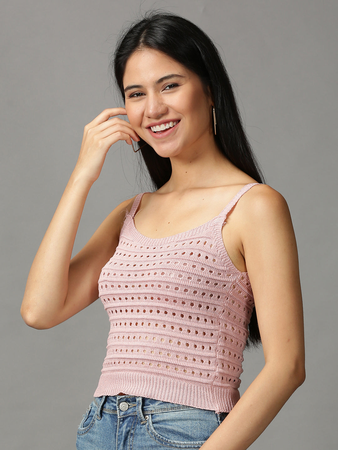 Women's Pink Lace Shoulder Straps Fitted Crop Top