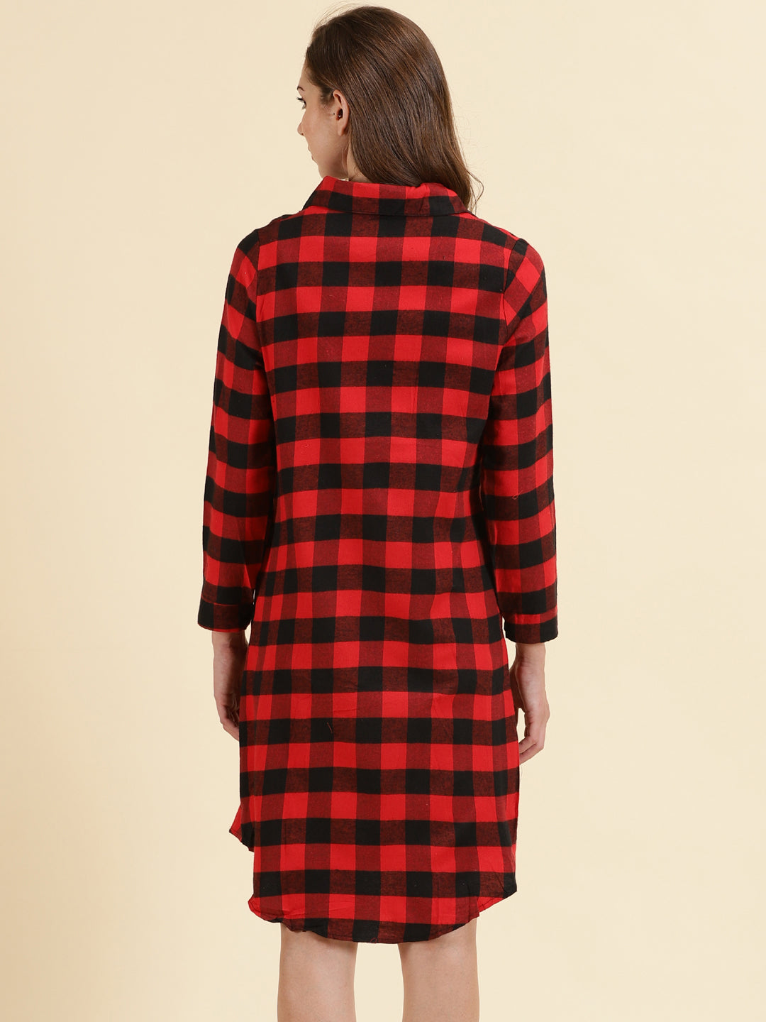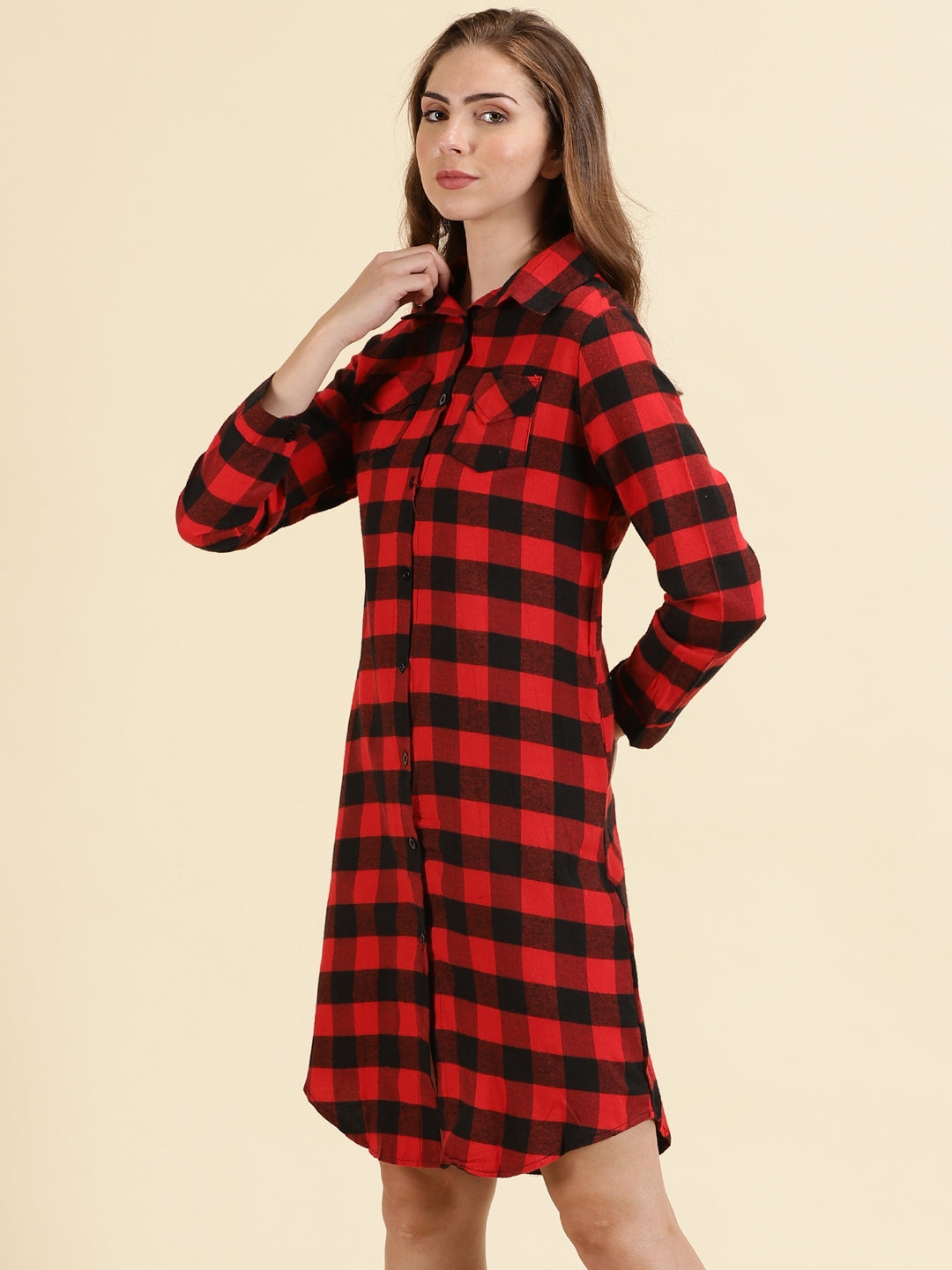 Women's Red Classic Buffalo Checked Cotton Casual Longline Shirt