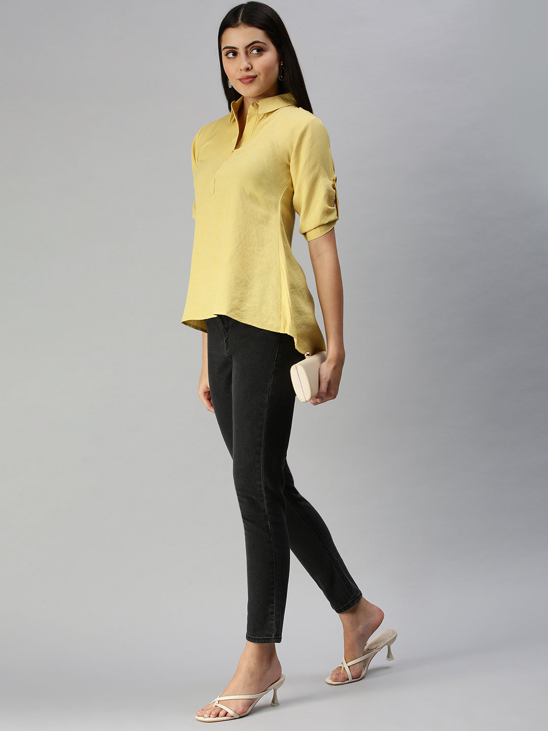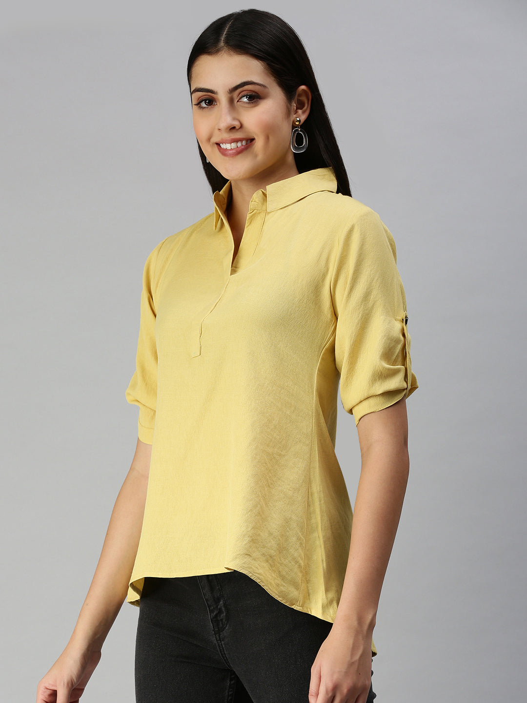 This Women's Yellow Solid Shirt is not just a fashion statement; it's a practical addition to your everyday wardrobe. Its high-quality fabric and timeless design provide both style and functionality. making it a must-have for any fashion-savvy individual.